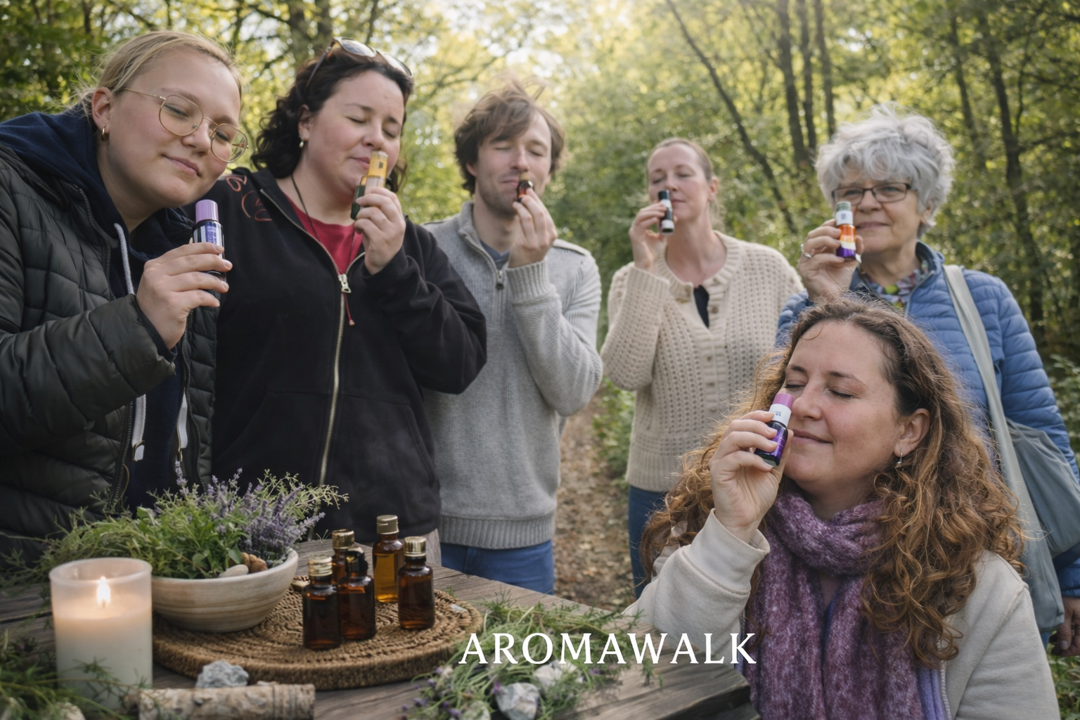 Vertraag en verbind met jezelf en de natuur tijdens een zachte aromawandeling.
