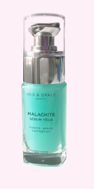De malachietpoeder, al duizenden jaren gebruikt voor het voorkomen van ooginfecties, is het belangrijkste ingrediënt van dit serum. Dankzij het koper heeft het zuiverende en kalmerende eigenschappen, ideaal voor de verzorging van gevoelige huid en vermoeide ogen. De groene tint geeft het serum een mooie natuurlijke watertint.
